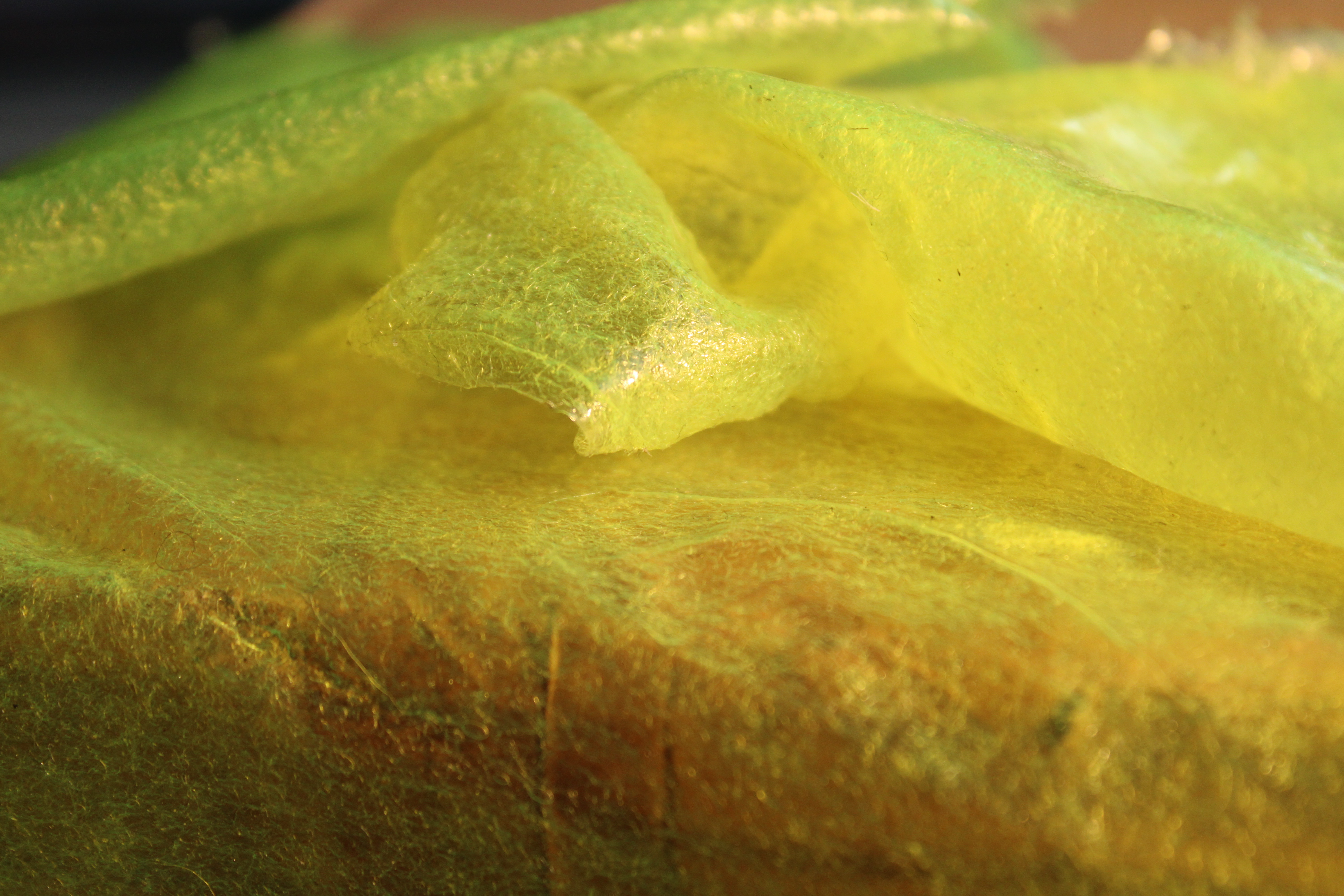 Orroz - Is a material collection made out of industrial weaving waste. When the yarns are too short they become useless for a weaving process, Orroz propose a way to transform those short yarns into powder to then merging them with bio-ingredients. The result is an ëinfiniteí material which can be disintegrated and recreated mantaining the textile powder a constant presence.